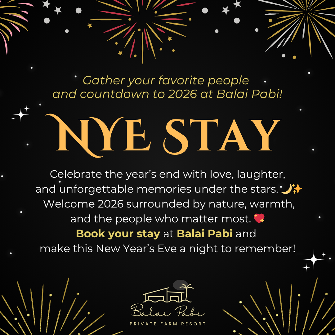 A private farm resort in the historic city of Malolos, Bulacan. Perfect for a staycation and small gatherings, our charming retreat features a refreshing pool and exclusive amenities designed for your comfort and enjoyment. Whether you’re celebrating a special occasion or simply seeking a peaceful getaway, our private resort offers the ideal setting. Create unforgettable memories with your loved ones at Balai Pabi, where every stay is a celebration.